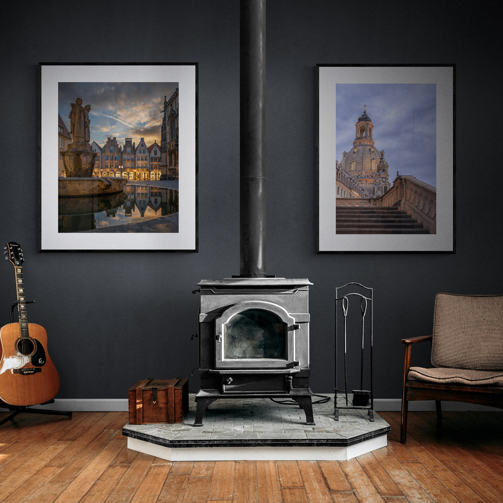 With the "Frauenkirche" I had a particularly great motif, but it took me quite a while to find a suitable shooting location. In the end, I chose the staircase at the "Verkehrsmuseum" (Museum of Transport), since it not only allowed me to get a tourist-free image, but also contributed to the composition of the picture. Once satisfied with the fine-tuning of the camera position, I was able to fully enjoy the beautiful architecture, the awakening lights of the city, the classical music of the string quartet playing nearby, in short: Dresden‘s evening vibes.